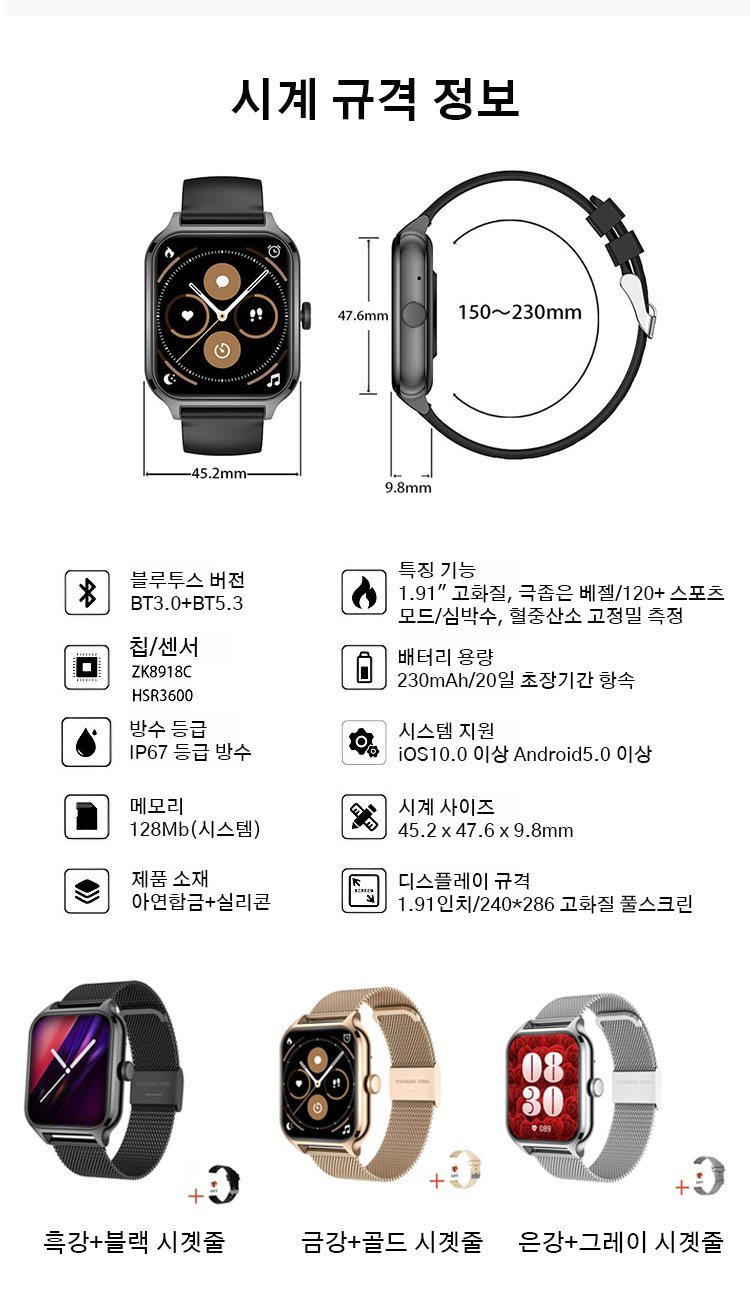 블루투스 통화 심박수 혈중 산소 모니터링 스포츠 시계 [건강 모니터링]